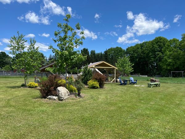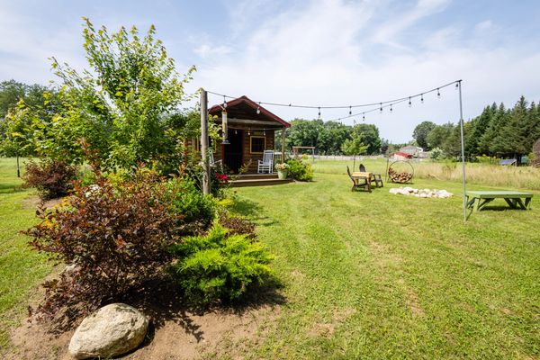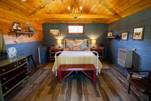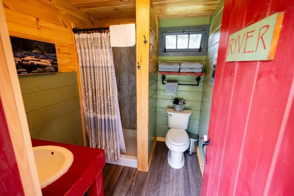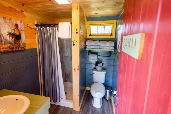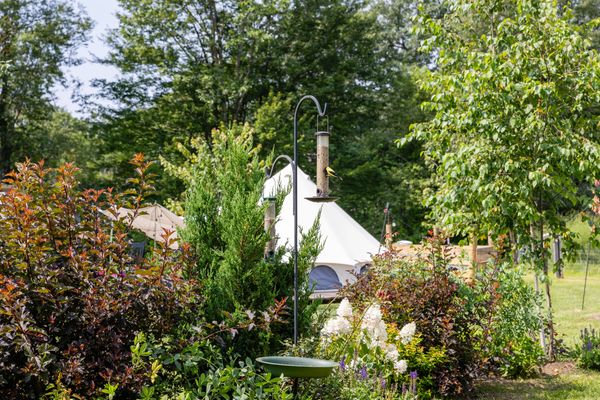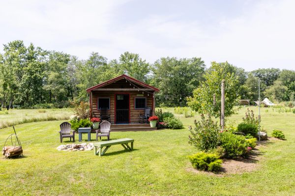 Your own private bunkhouse or tent, garden area and private bath just a short walk away.