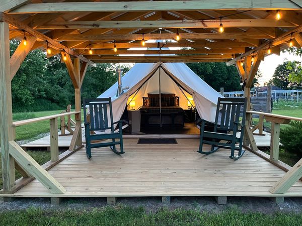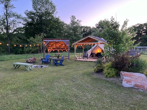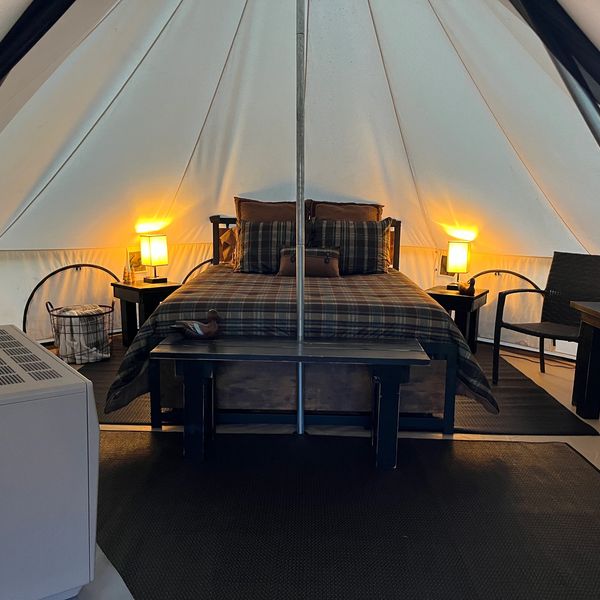 Private canvas glamping tent with private bath a short, well lit, walk away (approx. 75 - 100 feet)