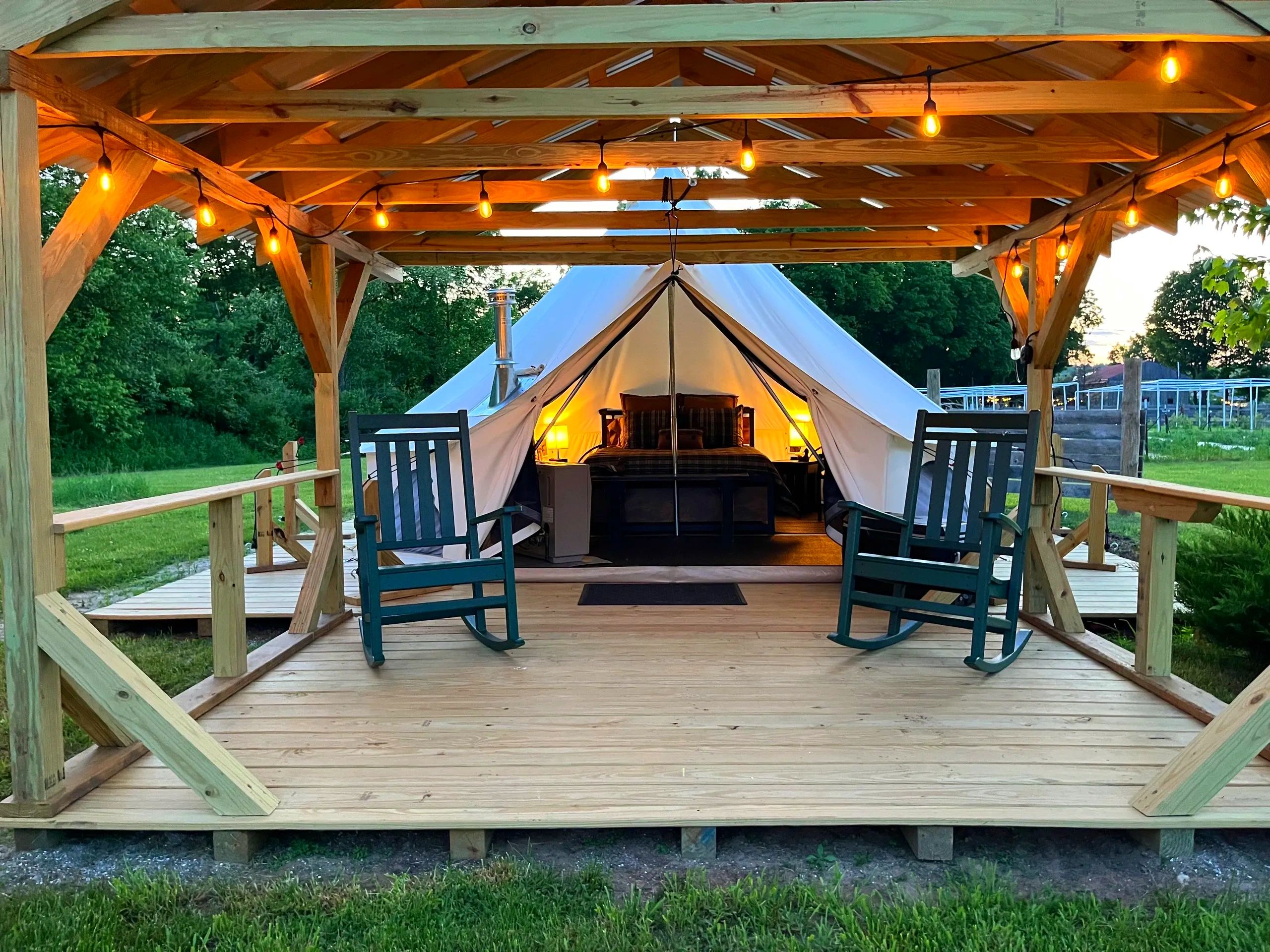 Private canvas glamping tent with private bath a short, well lit, walk away (approx. 100 - 125 feet)